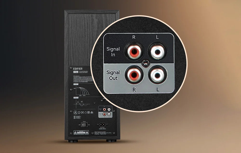 Az RCA (Radio Corporation of America, analóg audiocsatlakozó szabvány) bemenetek és kimenetek (Line In/Out) széles körű kompatibilitást biztosítanak az Edifier hangszórókkal és a házimozi vevőkészülékekkel és sztereó készülékekkel. Az automatikus készenléti funkció 15 perc inaktivitás után és az automatikus újraindulás jel észlelésekor kézi működtetés nélkül is energiát takarít meg.
