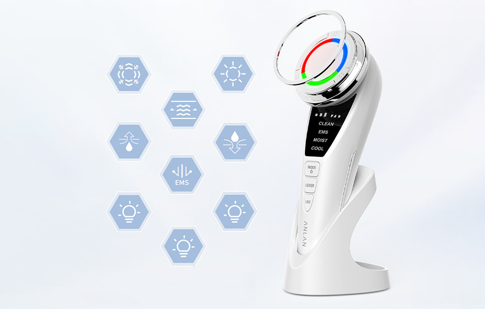 Az ANLAN ultrahangos arcmasszírozó olyan sok funkcióval rendelkezik, hogy akár 5 különböző bőrápolási eszközt is helyettesít. Használhatja fényterápiára, mélytisztításra, borogatásra és még az arc karcsúsítására is. És ez még nem minden, amit tud! A nagyfrekvenciás ion és rezgés üzemmód biztosítja, hogy a bőrápoló termékekből származó tápanyagok elérjék a bőr legmélyebb rétegeit, így hibátlan arcbőrben gyönyörködhet. Ne feledje, hogy a masszírozó használata előtt alaposan mossa le sminkjét.