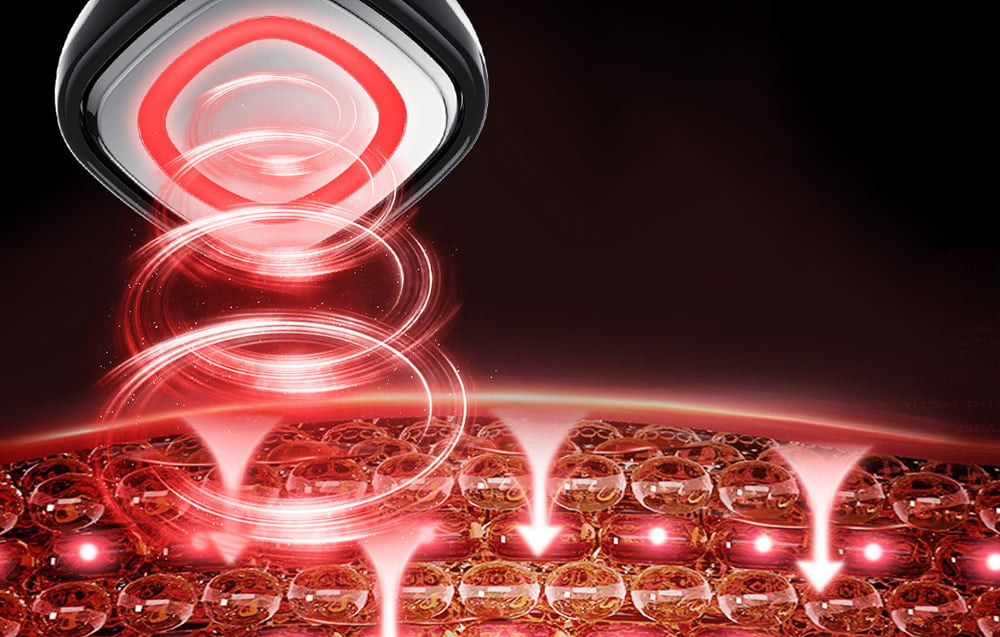 Tapasztalja meg a fényterápia jótékony hatását. A masszírozó készülék 463 nm hullámhosszú kék fényt használ, amely felveszi a harcot a bakteriális állapotok ellen, és segít a pattanások kezelésében. A vörös fény (623 nm) pedig serkenti a kollagéntermelést, javítja a bőr rugalmasságát és lassítja az öregedési folyamatot.
