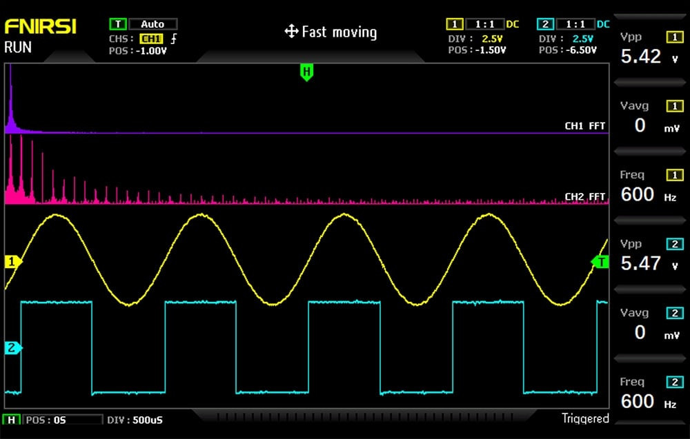 A beépített FFT funkció és az X-Y hullámforma megjelenítési mód lehetővé teszi a harmonikusok elemzését és két jel amplitúdóinak és fáziseltolódásainak összehasonlítását. Ezek hasznos eszközök az elektronikus áramkörök diagnosztikájában. Ezenkívül a kézi kurzormérési mód lehetővé teszi a csúcsérték és a frekvencia leolvasását a skála újraszámítása nélkül, ami növeli az elemzés pontosságát még torzított hullámformák esetén is. A készülék speciális algoritmust használ a tárcsajel dekódolásához, kiküszöbölve a mechanizmus oxidációja vagy kopása által okozott hibás leolvasások problémáját. Az oszcilloszkóp még akkor is megfelelően működik, ha a kódoló megsérült.
