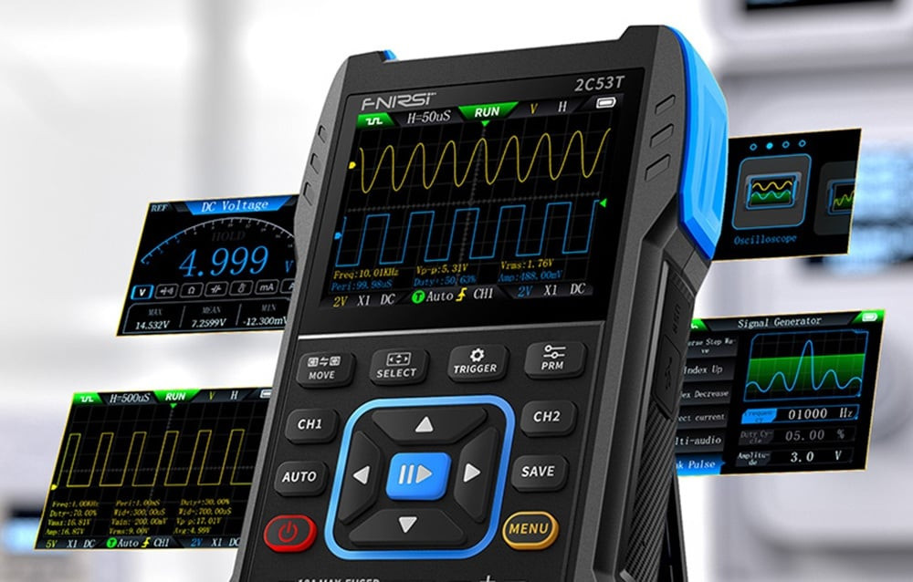 FNIRSI 2C53T hordozható 3 az 1-ben oszcilloszkóp