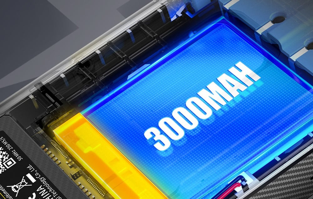 A szilikonbevonatú ABS műanyag ház csepp- és ütésállóságot biztosít, az aranyozott NYÁK-sínek pedig korrózióállóak. A 3000 mAh-s akkumulátor akár 3 órás üzemidőt is garantál. A kihajtható állvány lehetővé teszi a készülék bármilyen szögben történő elhelyezését, az ergonomikus gombok és az USB-C port pedig kényelmet biztosít a kezelés és a töltés során.