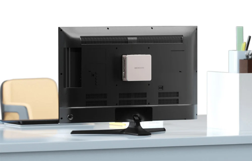 A GEEKOM A5 a lenyűgöző teljesítményt kompakt mérettel ötvözi - nem foglal túl sok értékes helyet, és még egy kis asztalon is jól működik. A mellékelt VESA tartó segítségével a monitor mögé is felszerelheti. A minimalista, elegáns dizájnnak köszönhetően a készülék tökéletesen illeszkedik bármilyen munkaterületre.