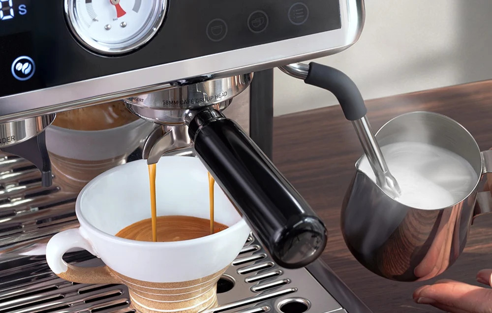 A két független kazán használata lehetővé teszi, hogy egyszerre készítsen eszpresszót és tejhabot. Az első bojler gondoskodik a kávé kivonásához szükséges víz megfelelő hőmérsékletéről (92°C), míg a második bojler magas gőzhőmérsékletet (105°C) biztosít, ami gyors működést és hőmérséklet-stabilitást jelent. Ez azt jelenti, hogy nem kell megvárnia, amíg a hőmérséklet megváltozik a kávéfőzés és a tejhabosítás között.