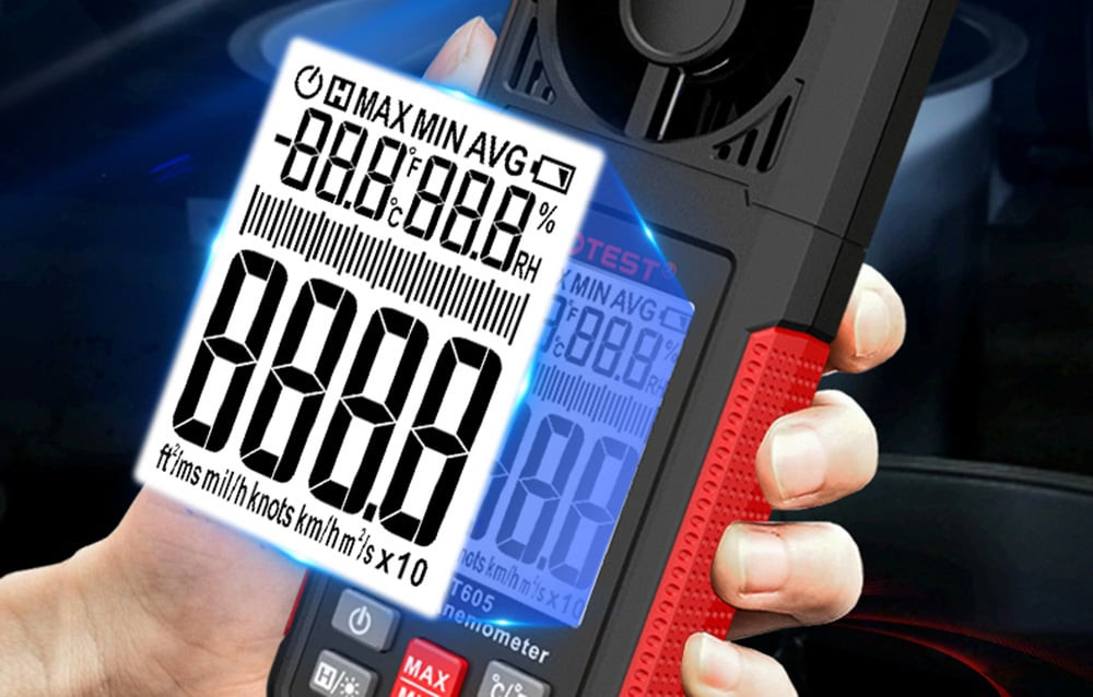 A HT605 használata egyszerű és kényelmes. Az anemométer olyan gombokkal van felszerelve, amelyekkel kiválaszthatja a mérési egységet, és a készülék működését az Ön igényeihez igazíthatja. Választhat a következők közül: m/s, km/h, mil/h, ft/s és akár csomó. Használhatja továbbá a MAX/MIN funkciót és a °C/°F váltást is. Az LCD-képernyő HD-minőségben jeleníti meg a legfontosabb információkat, könnyű és praktikus kialakításának köszönhetően pedig könnyen tárolhatja.