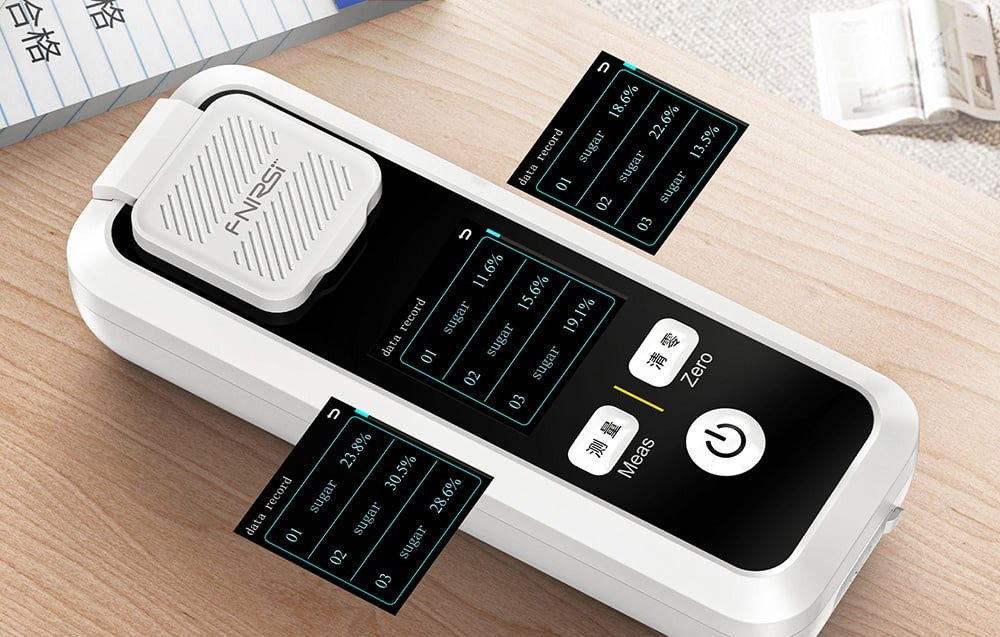 A készülék lehetővé teszi a különböző gyümölcsök és italok vizsgálatát, és hasznosnak bizonyul a laboratóriumi minőségellenőrzésben és a mindennapi életben, például vásárláskor, a konyhában vagy gyümölcsszüretkor. Például az alma átlagos Brix-szintje 13,8%, a narancsé 10,8%, a licsié 18,2%, a mangosztáné 15,6%, az eperé 13,6%, a szőlőcukoré 17,2%.