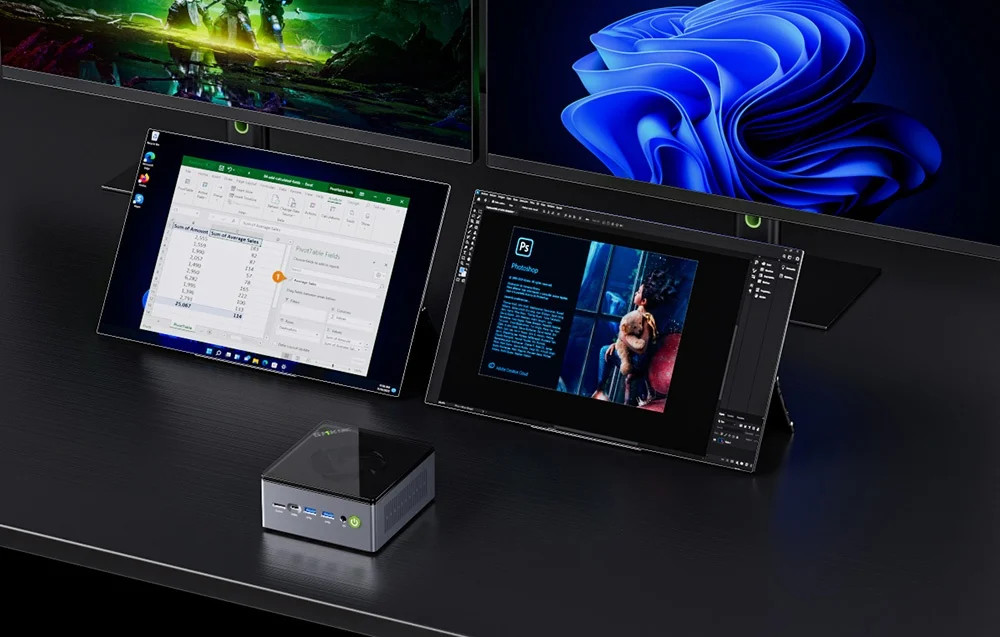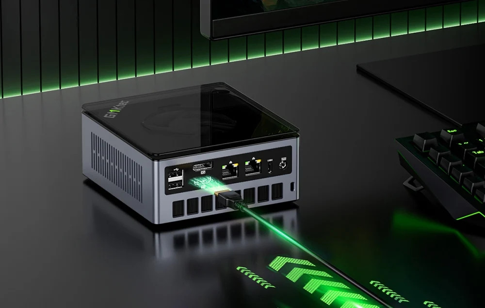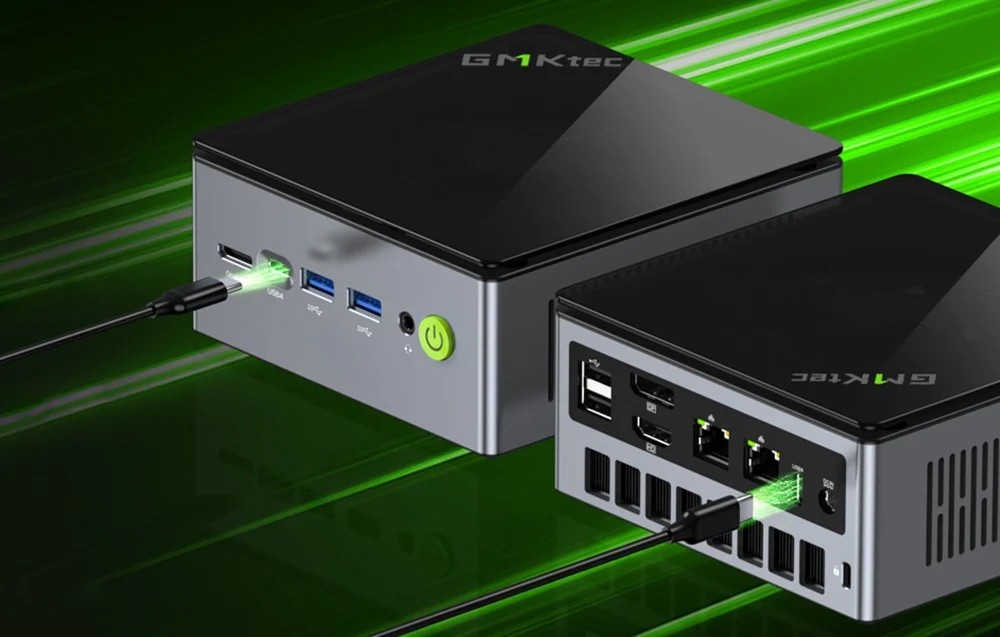 A GMKtec M7 számos portot kínál, köztük két USB 4.0 (PD/DP/DATA), két 2,5G Intel i226V (RJ45) LAN-csatlakozó, HDMI 2.1 (8K@60Hz), DisplayPort 2.0 (4K@144Hz), két USB 3.2 Gen2 port, USB 2.0 csatlakozók, egy Oculink (PCIe 4.0 x4) port, valamint 3,5 mm-es CTIA audiocsatlakozó és Kensington-zár. Az akár négy képernyő támogatása akár 8K felbontás mellett hihetetlen munkaterületet és teljes körű ellenőrzést biztosít egyszerre több feladat felett.