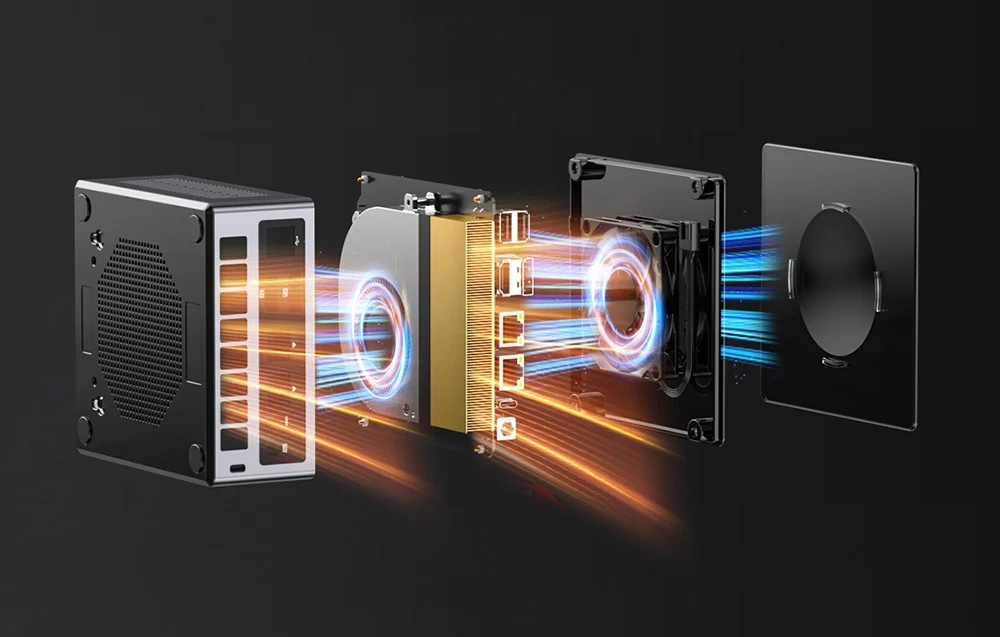 A rendkívül csendes kettős hűtés (felül és alul) még nagy teljesítményű üzemmódban is stabil üzemi hőmérsékletet biztosít. Igényeitől függően csendes üzemmódban (35 dB), kiegyensúlyozott üzemmódban vagy maximális teljesítményű üzemmódban (40 dB) működhet, miközben alacsony CPU-hőmérsékletet és rugalmas, akár 16 GB-os VRAM-elosztást biztosít.