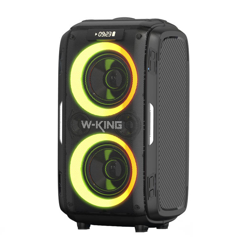 A hangszóró 18 000 mAh-s akkumulátorral van felszerelve, ami hosszú üzemidőt jelent. Teljesen feltöltve akár 12 órás üzemidőt kínál. A készlet tartalmaz egy adaptert, amely megkönnyíti a készülék feltöltését. Továbbá lehetőség van 2 hangszóró párosítására a még jobb hanghatások érdekében. A W-KING T9 Pro IPX6-os vízállósággal és színes RGB háttérvilágítással is rendelkezik.