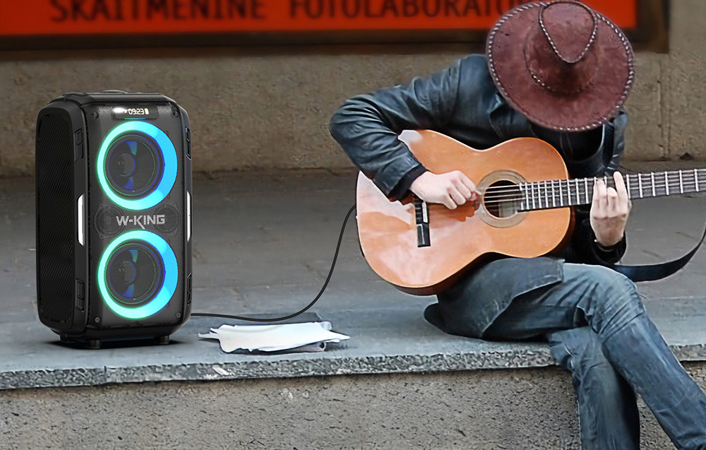 A hangszóró többféleképpen csatlakoztatható a kompatibilis eszközhöz, így a működését az igényeihez igazíthatja. A W-KING T9 Pro támogatja a Bluetooth 5.0 verzióját, így stabil és gyors, akár 10 m-es kapcsolatot élvezhet. Ezenkívül 3,5 mm-es, USB és 6,5 mm-es audioportokat kínál gitár vagy mikrofon csatlakoztatásához.