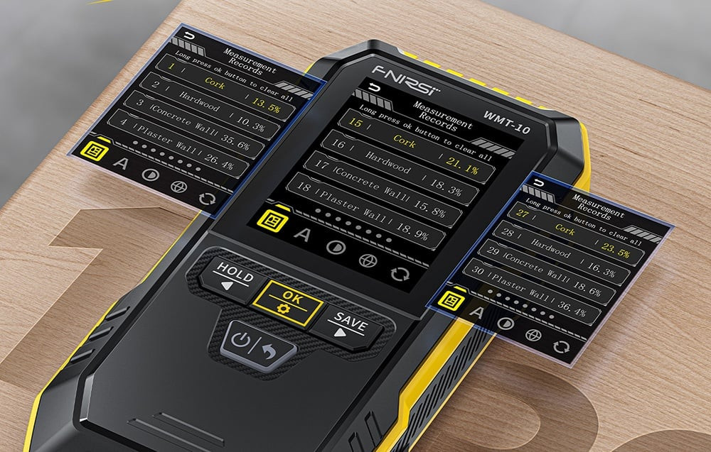 Az FNIRSI WMT-10 hasznosnak bizonyul fa, papír, vakolat, cement, gipsz, vakolat, beton vagy tégla nedvességtartalmának méréséhez. Nélkülözhetetlen eszköz az építőipari, felújítási, ács- és befejezőipari szakemberek számára - mindenhol, ahol a mérés pontossága és a vizsgált felület meg nem zavarása kulcsfontosságú.